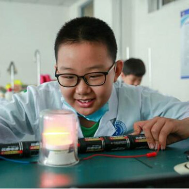 當白熾燈成功閃亮,泡沫噴泉噴薄而出,孩子們露出開心的笑容,滿滿的成就感!