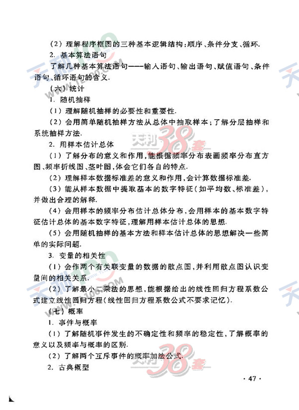 2012年新課標高考大綱(數學文)