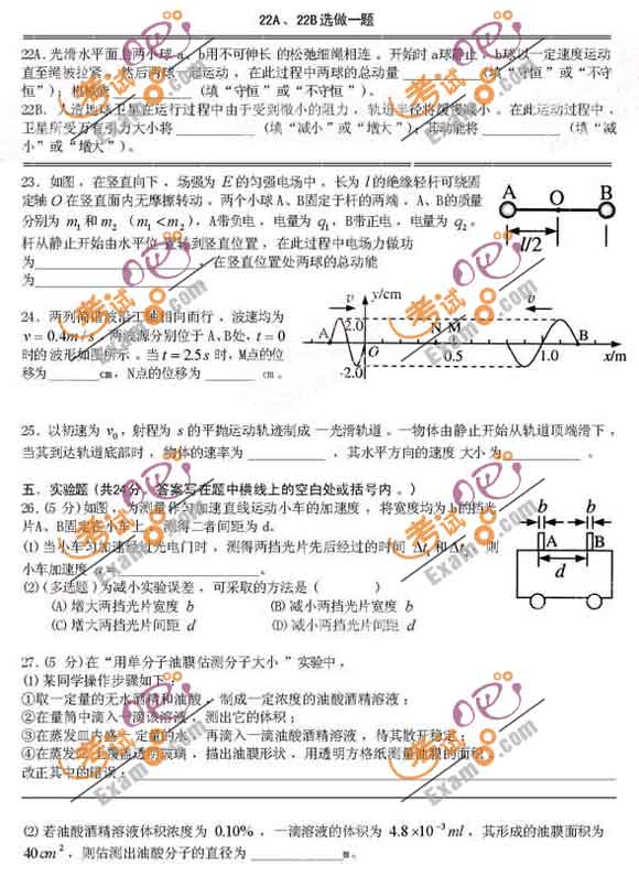 2011年上海高考物理試題及答案(5)