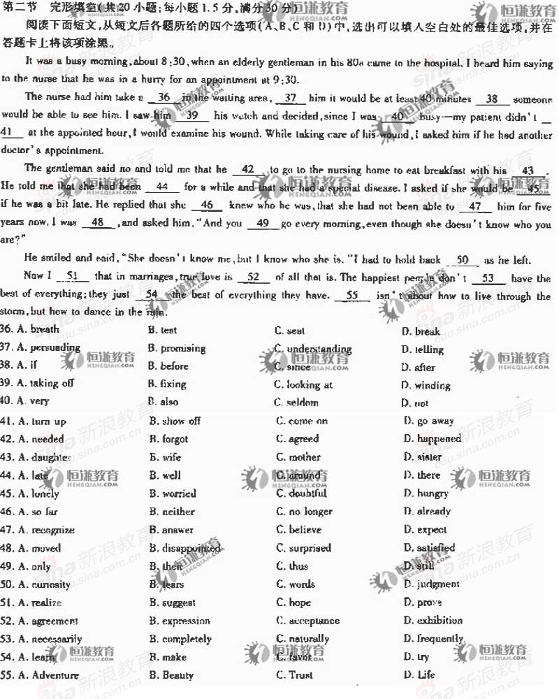 2010年高等學校全國統考英語(新課標全國卷)試題(4)