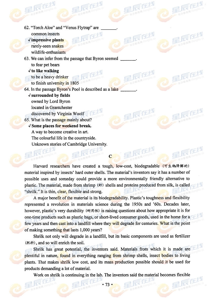 2012年湖南高考英語(yǔ)真題及答案(8)