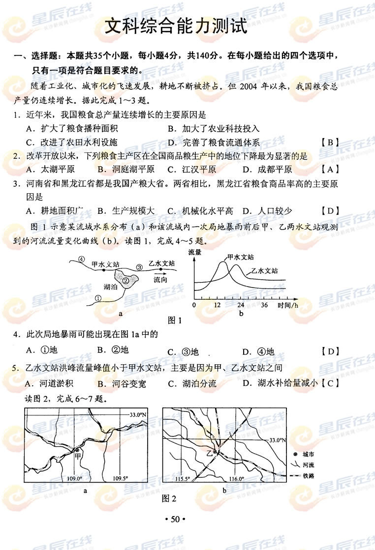 2012年高考文綜真題及答案新課標(biāo)卷公布