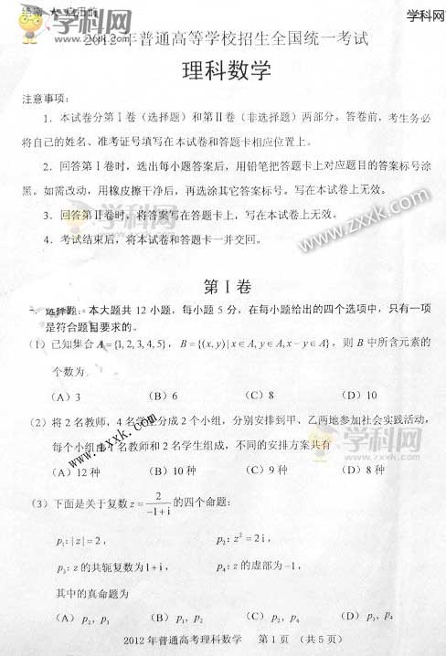 2012年新課標高考數學(理)真題及答案育路教育網第一時間公布,請各位考生及時的查看,育路教育網祝你考試順利。