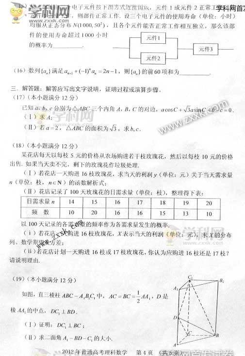 2012年高考新課標卷數學(理)真題及答案(4)