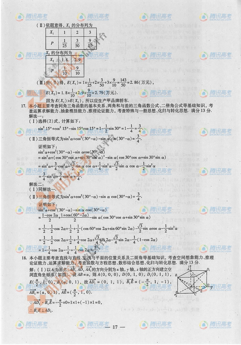 2012年福建高考數學(理)真題及答案公布(4)