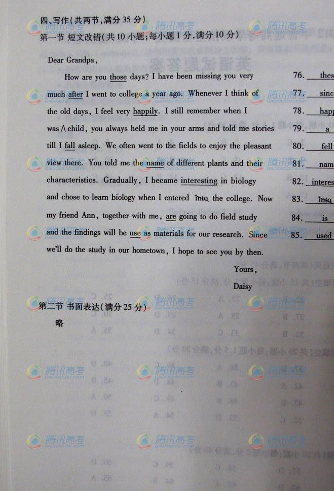 2012年高考英語參考答案(重慶卷)(2)
