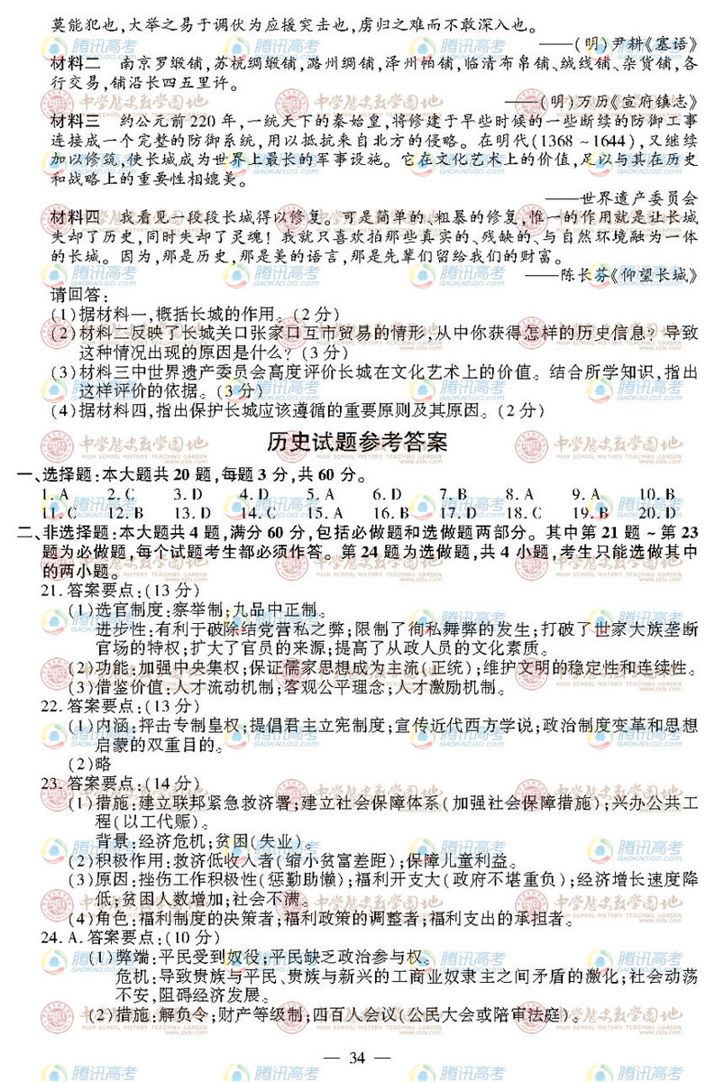 2012年江蘇高考歷史真題及答案公布(6)