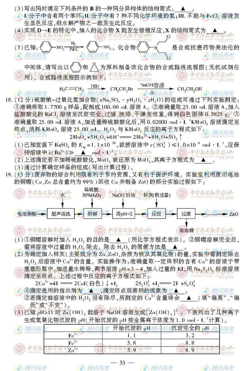 2012年江蘇高考化學(xué)真題及答案公布(5)