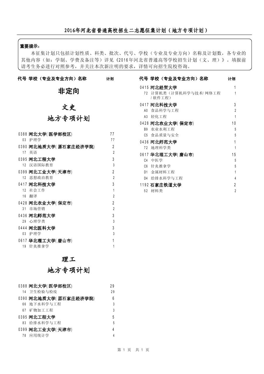 2016年河北高考本科一批、地方專項計劃二志愿征集計劃(5)