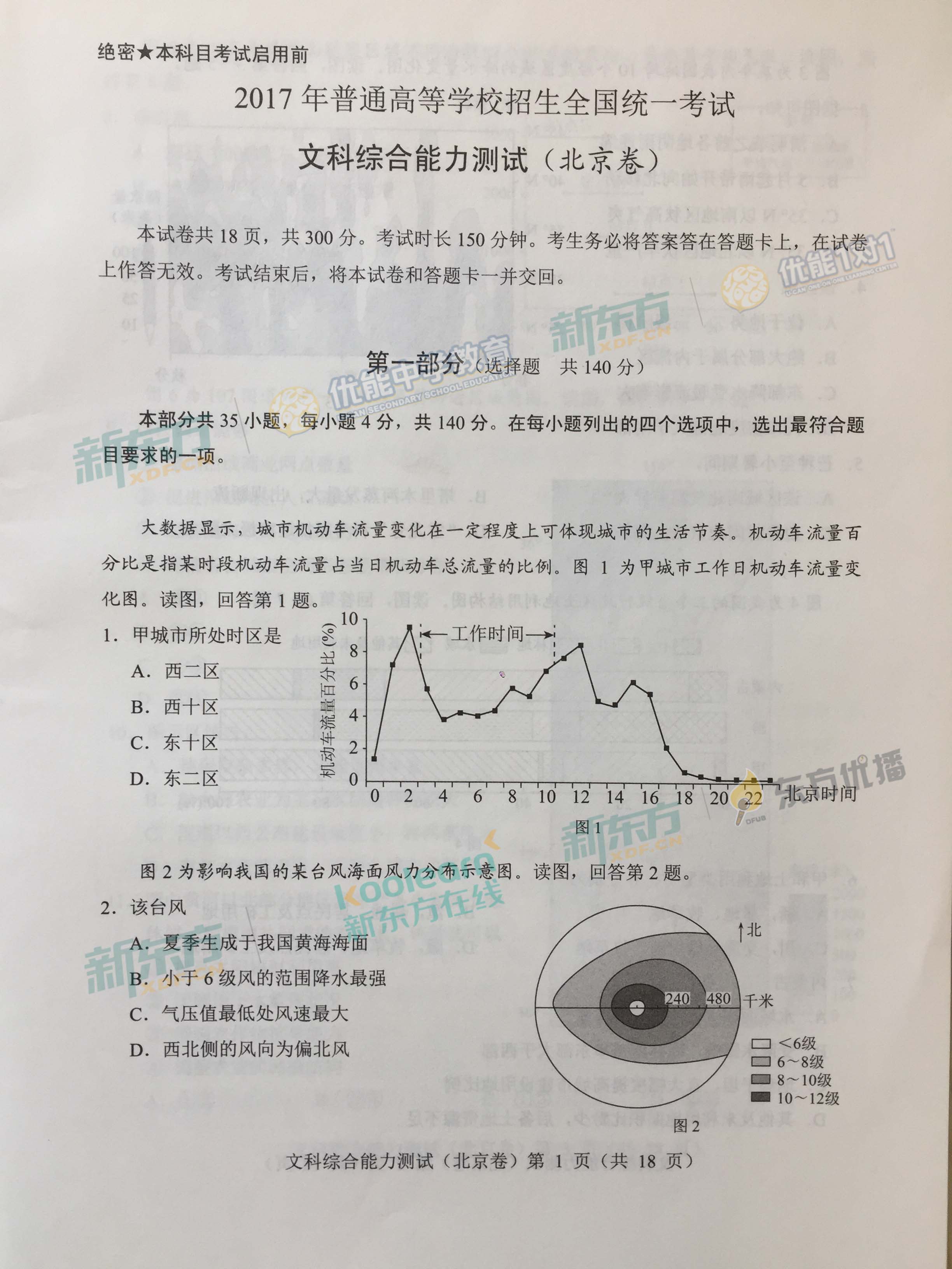 2017年北京高考文綜真題及答案由育路高考網考后首發,更多關于北京高考答案、北京高考試題等信息,請關注育路高考網或微信搜索“育路高考招生網”獲取。