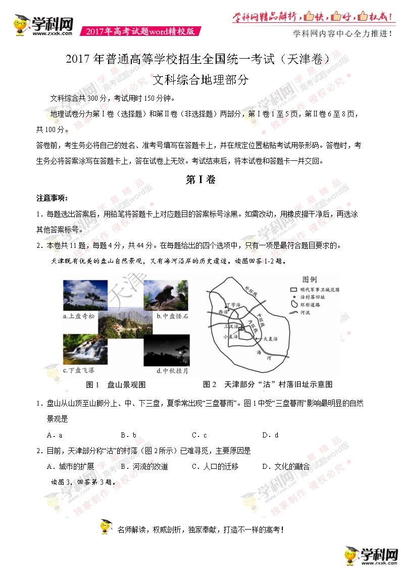 2017年天津高考文綜真題及答案由育路高考網考后首發,更多關于天津高考答案、天津高考試題等信息,請關注育路高考網或微信搜索“育路高考招生網”獲取。