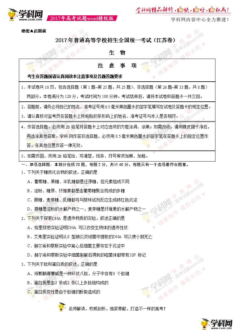 2017年江蘇高考生物真題及答案由育路高考網(wǎng)考后首發(fā),更多關(guān)于江蘇高考答案、江蘇高考試題等信息,請關(guān)注育路高考網(wǎng)或微信搜索“育路高考招生網(wǎng)”獲取。