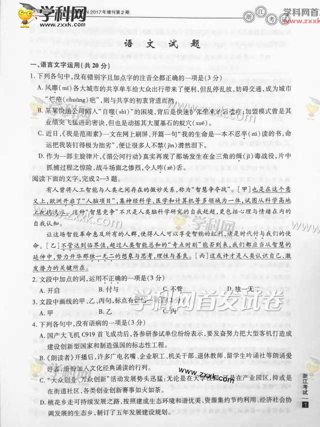 2017年浙江高考語文真題及答案由育路高考網考后首發,更多關于浙江高考答案、浙江高考試題等信息,請關注育路高考網或微信搜索“育路高考招生網”獲取。