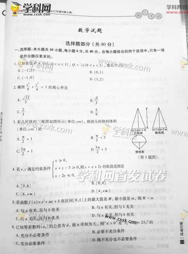 2017年浙江高考理數真題及答案由育路高考網考后首發,更多關于浙江高考答案,浙江高考試題等信息,請關注育路高考網或微信搜索“育路高考招生網”獲取。