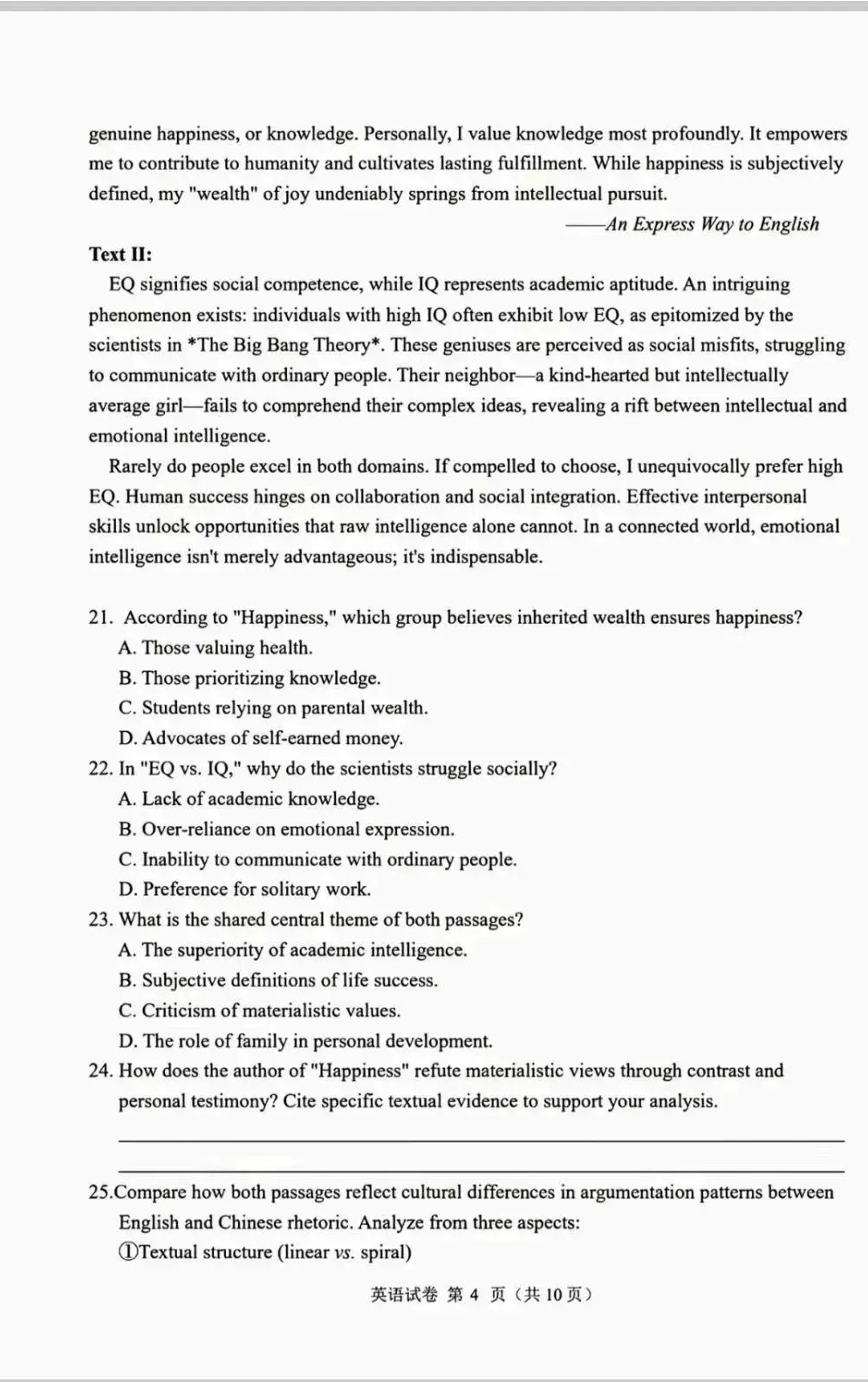 三、2025年安徽新高考一卷外語(英語)試卷真題及答案解析