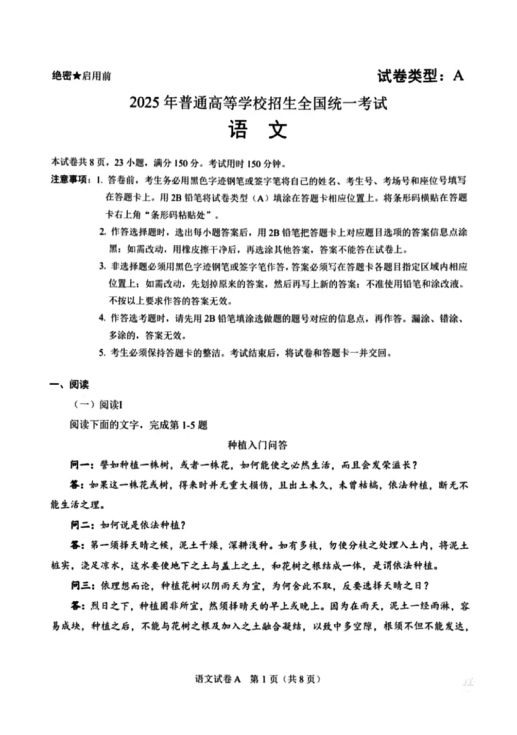 一、2025年安徽新高考一卷語文試卷真題及答案解析