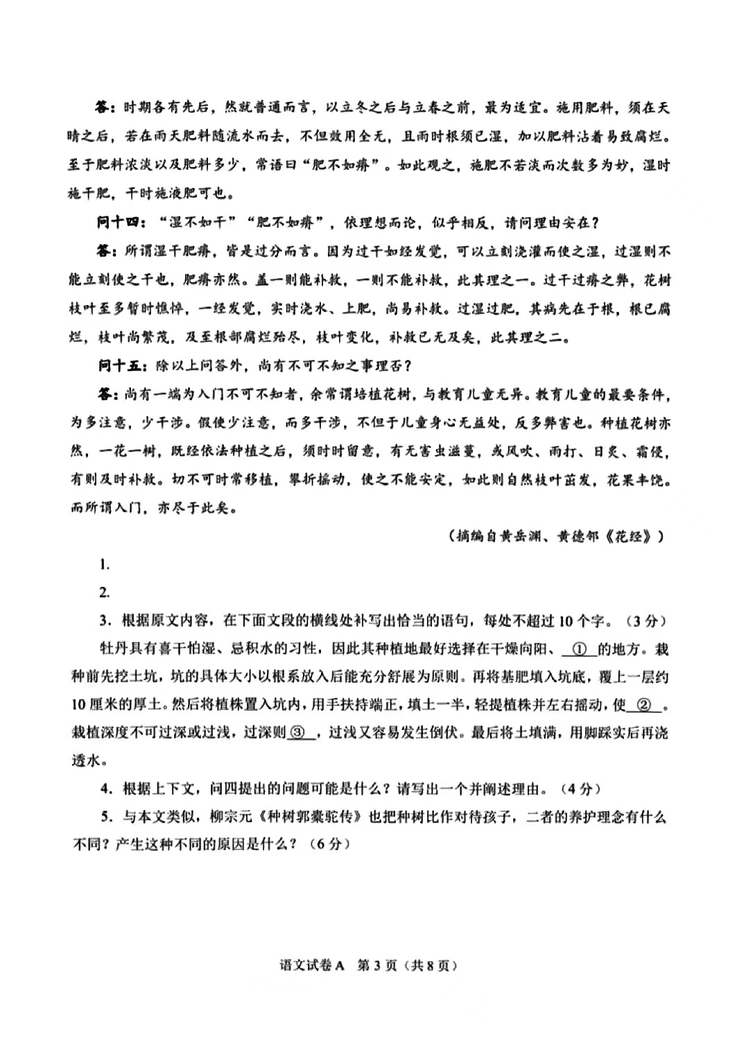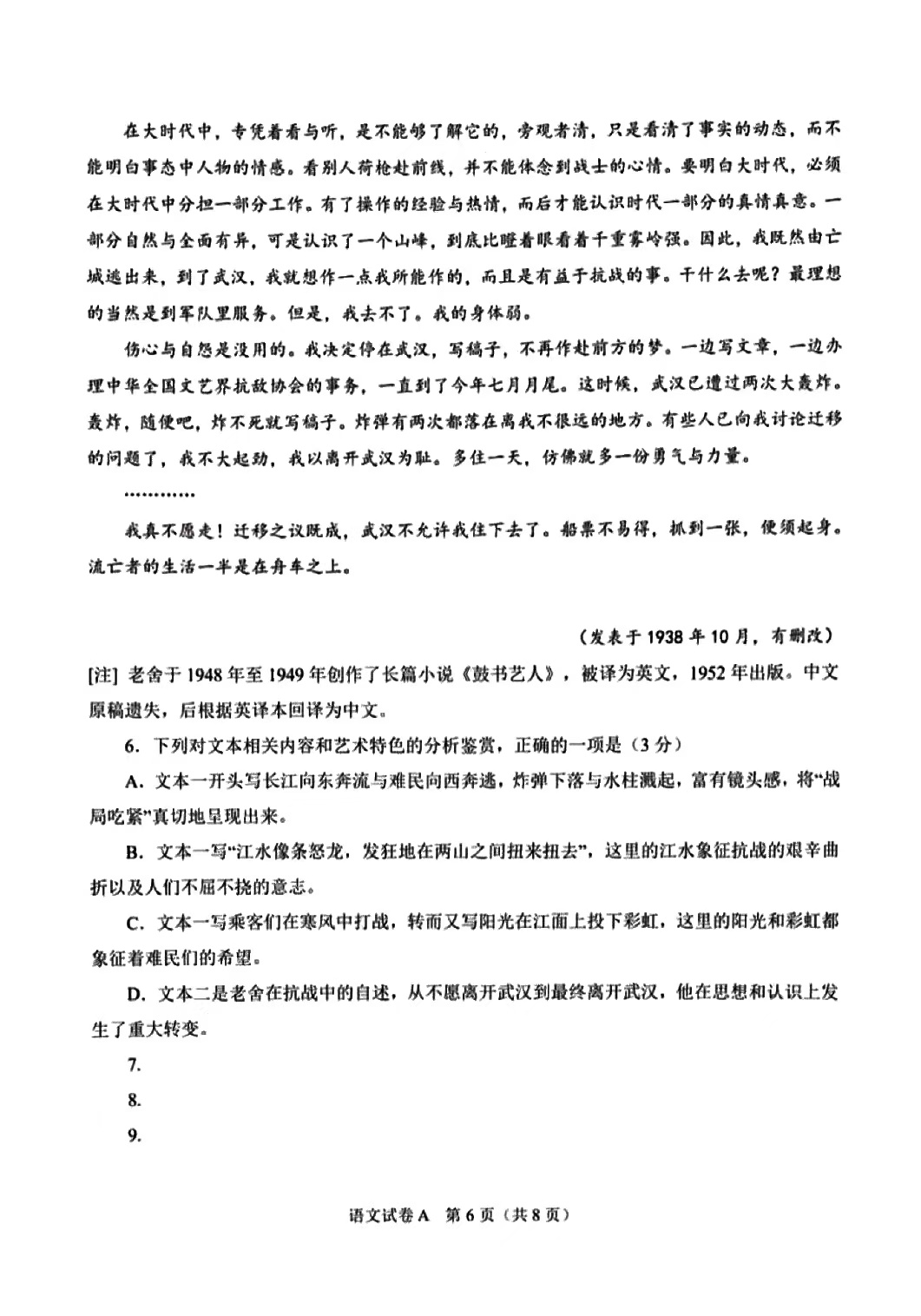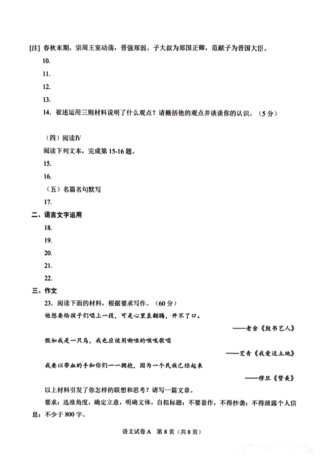 2025年安徽新高考一卷語文及全科試卷真題答案更新