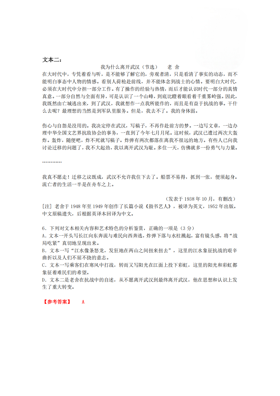 ——老舍《鼓書藝人》(見全國一卷閱讀II)