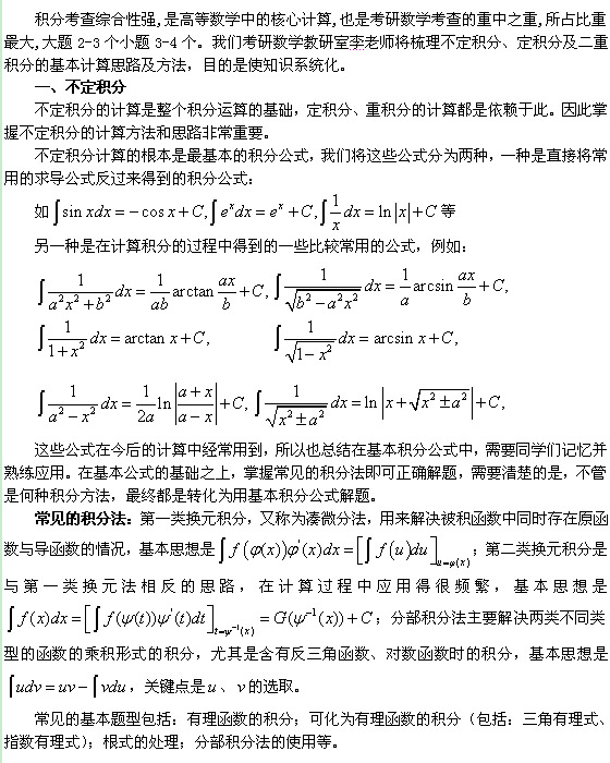 考研數學考點:積分的計算