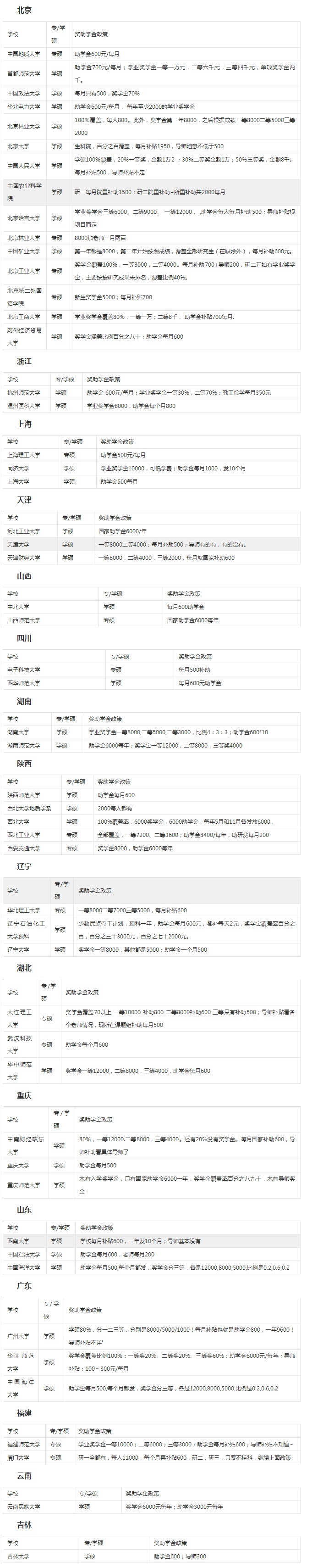 在擇校的時(shí)候,學(xué)院提供的獎(jiǎng)助學(xué)金想必也是各位考研er的重要參考因素,那么各大院校的獎(jiǎng)助學(xué)金具體情況如何呢,下面為大家整理了以下表格以供參考。