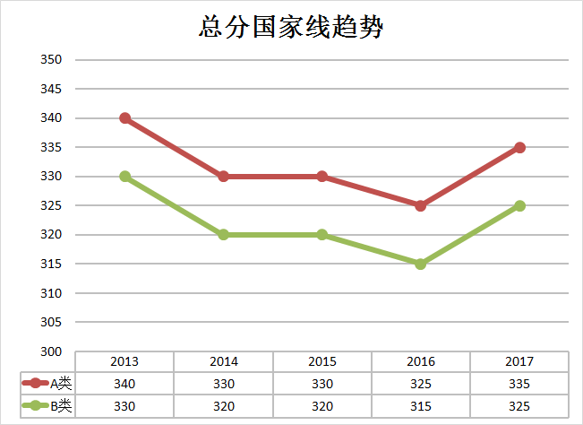 歷年保險碩士考研復試分數線及趨勢圖(2013-2017年)