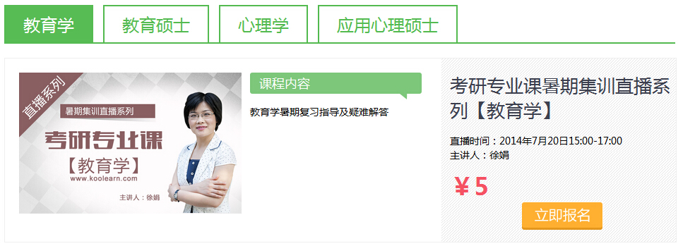 隨著各大高校陸續(xù)放假,2015考研的同學(xué)也進(jìn)入比較為關(guān)鍵的暑期強(qiáng)化復(fù)習(xí)階段。暑假階段比較突出的特點(diǎn)就是"時(shí)間充裕且沒(méi)有約束",對(duì)于非在職考生而言,暑假的密集復(fù)習(xí)效果有望超越整個(gè)基礎(chǔ)階段的復(fù)習(xí)。新東方考研網(wǎng)絡(luò)課堂全新推出【2015考研專(zhuān)業(yè)課暑假直播】集訓(xùn),共涵蓋13大類(lèi)考研專(zhuān)業(yè)課,有新東方名師專(zhuān)業(yè)授課(直播+錄播),全程跟蹤指導(dǎo),讓您充分利用暑假時(shí)間, 實(shí)現(xiàn)考研夢(mèng)想。