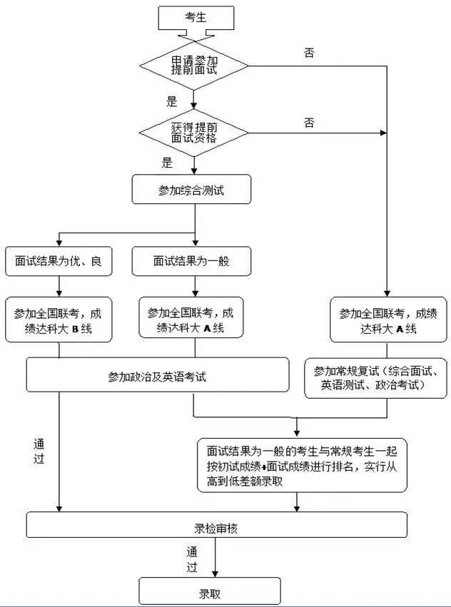 3.“常規批”招生方式。采取“網上報名、現場確認、全國聯考、過線復試(綜合素質+政治+英語)、擇優錄取”的方式進行。