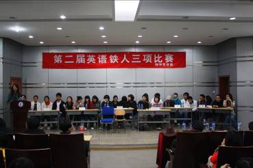 此次大賽參賽隊由北京郵電大學世紀學院各院系經過層層嚴格選拔派出,共有十一支隊伍。大賽為期兩天,分為兩場,每場三個環節。各代表隊精彩紛呈的表演給觀眾留下了深刻印象。第一環節“電影配音”中,各支隊伍通過創新、獨到的想象,運用形象生動的語言使一部無聲、無字幕的電影變得風趣幽默。第二環節的“猜詞游戲”,代表隊在緊張激烈的氛圍里,進行詞匯的較量,能力的比拼,展示了團結的力量。而第三環節的“話劇表演”歷來是鐵人三項的精華,各代表隊精心準備的經典話劇,使現場嘉賓、評委及觀眾們贊不絕口。比賽期間還穿插了各代表隊的才藝展示,也讓在場觀眾大開眼界。