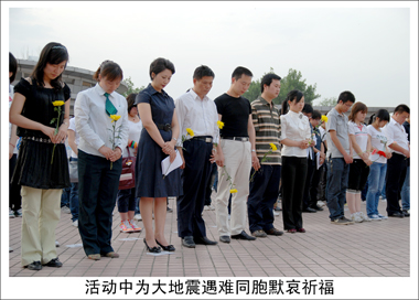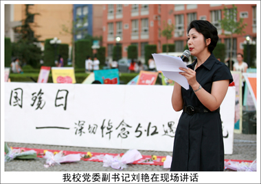 北京吉利大學(xué)劉艷副書(shū)記在現(xiàn)場(chǎng)發(fā)表了重要講話,劉書(shū)記說(shuō):“今天,我們?cè)谶@里集會(huì),紀(jì)念四川汶川特大地震一周年,向在地震中不幸罹難的同胞們、向?yàn)閵Z取抗震救災(zāi)斗爭(zhēng)重大勝利而英勇獻(xiàn)身的烈士們表達(dá)我們的深切思念。”