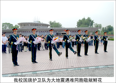 活動(dòng)在小號(hào)獨(dú)奏《思念》中開(kāi)始,所有到場(chǎng)人員莊重肅穆,現(xiàn)場(chǎng)氣氛凝重。北京吉利大學(xué)校國(guó)旗隊(duì)代表在紀(jì)念牌前獻(xiàn)上鮮花,緊接著,北京吉利大學(xué)黨委副書(shū)記劉艷、學(xué)生處處長(zhǎng)莊小健、校團(tuán)委書(shū)記張征、校團(tuán)委副書(shū)記李莉老師及校學(xué)生會(huì)代表獻(xiàn)上鮮花。接著北京吉利大學(xué)全體師生向?yàn)?zāi)難中的遇難者默哀一分鐘。