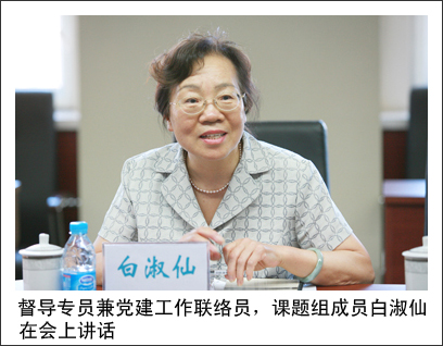 商學院劉江寧院長就北京吉利大學商學院為例介紹了黨建工作的基本概況,提出黨建和思想政治工作中存在的困難。新聞與信息傳播副院長王桂琴、北京吉利大學黨辦主任張帆闡釋了北京吉利大學推薦入黨積極分子的條件與標準,他們指出,北京吉利大學的推優不是單一的團組織推薦,而是根據學生的成績、素質等綜合因素考慮。同時,會上還就黨費和人員分配不合理等問題向調研組專家提出建議。