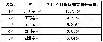 表2:2009年7月-9月房地產(chǎn)開發(fā)人才需求增長省份TOP5
