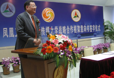 2007年11月15日,鳳凰衛視與中國傳媒大學在北京簽署戰略合作框架意向書,雙方建立戰略合作伙伴關系,共同組建和發展中國傳媒大學鳳凰學院。鳳凰衛視控股有限公司董事局主席、行政總裁劉長樂與中國傳媒大學黨委書記陳維嘉、校長蘇志武出席了簽字儀式。