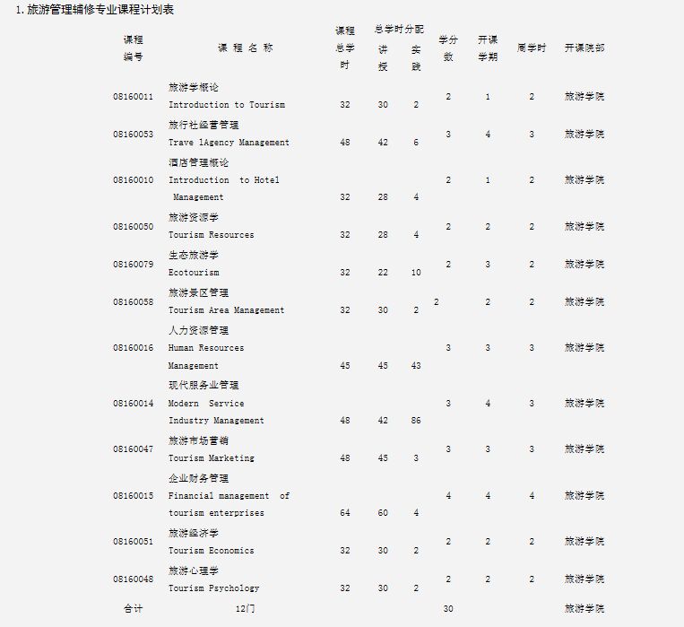 1.旅游管理輔修專業(yè)課程計(jì)劃表