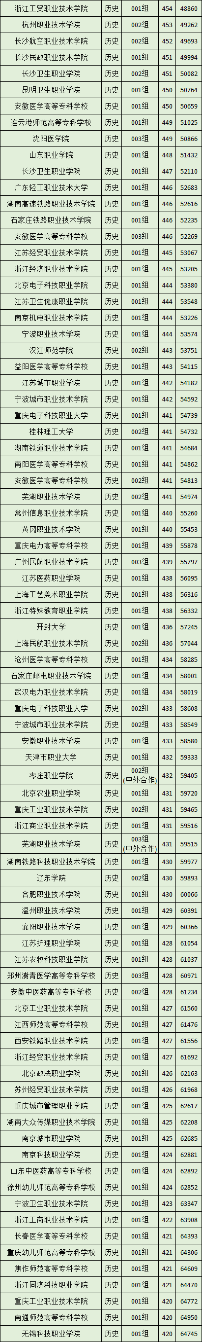 在歷史類高考中,?拼髮W的錄取分數(shù)線區(qū)間為200分至673分。長沙衛(wèi)生職業(yè)學院003組的錄取分數(shù)線最高,為488分,對應的錄取位次在34100。而錄取分數(shù)線最低的是湛江幼兒師范?茖W校001組,錄取分數(shù)為200分,對應的錄取位次為135218。