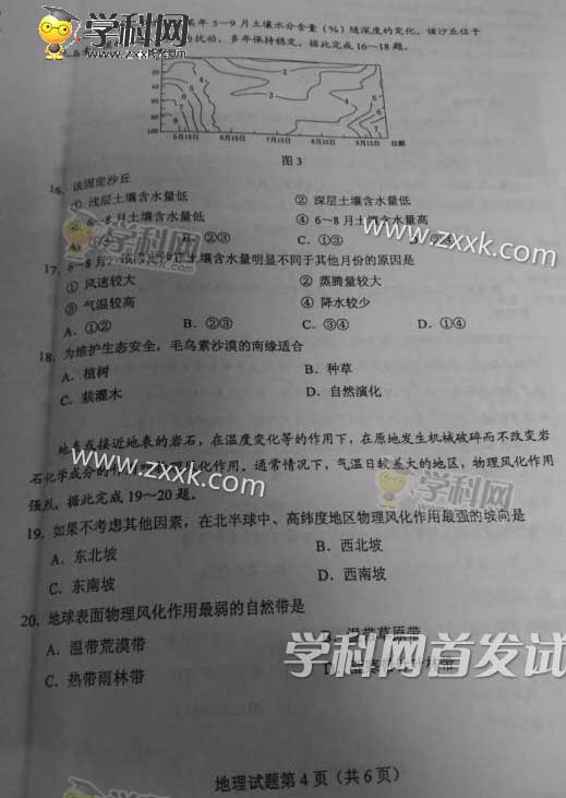2016年海南高考地理真題及答案(4)