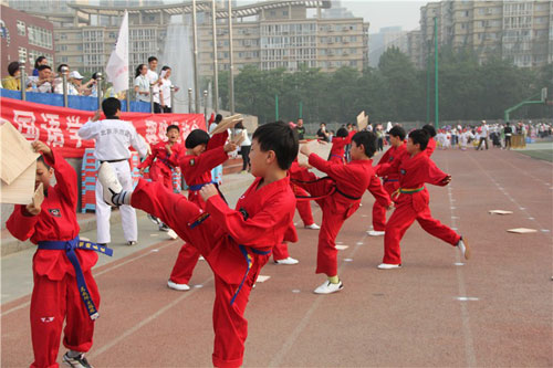 入場式進(jìn)行完畢后,進(jìn)行了莊嚴(yán)的升國旗儀式。升旗儀式結(jié)束,進(jìn)行廣播操和武術(shù)操展示,輕盈活潑的舞姿、朝氣蓬勃的笑臉、協(xié)調(diào)統(tǒng)一的動作、獨(dú)具匠心的編排,使開幕式現(xiàn)場處處充滿著動感、洋溢著激情。由劉校長帶領(lǐng)的學(xué)校家委會表演的太極拳,更是迎來了陣陣喝彩。