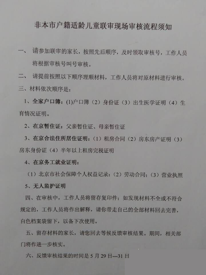 文章內(nèi)容來源于一位熱心家長分享,小編在這里為大家分享一下海淀區(qū)非京籍適齡兒童聯(lián)審現(xiàn)場審核流程須知,在這里分享給廣大家長,希望能夠給你你提供一些參考。