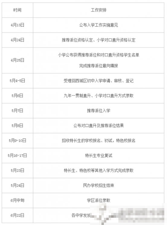 西城區(qū)2015年義務(wù)教育階段入學(xué)工作時(shí)間表