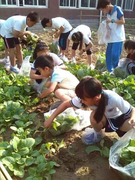 北京力邁外國語學校的學生在“小菜園”摘菜