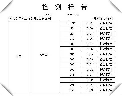 Indoor air inspection: On Sept. 7th, Zhong Huan Research and Environment Monitor (Beijing) Co., Ltd collected air sample of 14 indoor locations. Benzene, toluene, xylene, TVOC comply with national indoor air standard GB1883-2002.