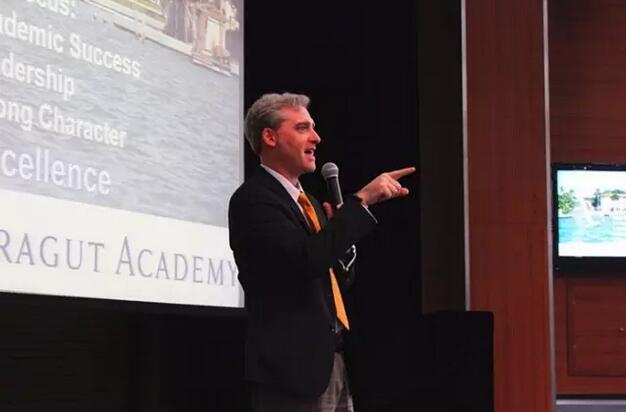 之后JustinPoupart校長開始演講,帥氣的外表首先得到了學生的喜愛,之后開始介紹美國法拉古特中學,也就是天津校區(qū)的學籍校。對學校的地理位置,開設課程,辦學設施和學校生活等方面進行了介紹。在今年暑期階段,天津校區(qū)的學生進行了暑期夏令營,Justin也對學生的表現(xiàn)予以肯定。并表示歡迎學生再次參加夏令營活動。
