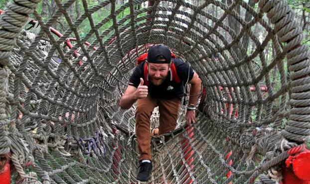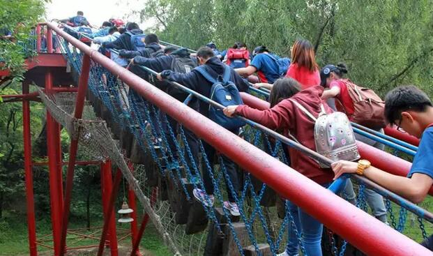 在山地訓練中還有很多野外運動項目,例如爬網橋、鐵索橋、平衡木、射擊等,而最令人印象深刻的,莫過于緊張刺激空中索道。學生與外教老師們在活動中積極參與、相互交流。