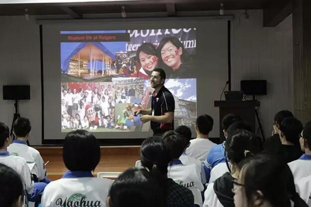 美國法拉古特天津校區(qū)迎來了RU的招生官Marco Dinovelli,在學校禮堂,Marco進行了一場精彩的講座,參加學生主要是高二年級的學生。