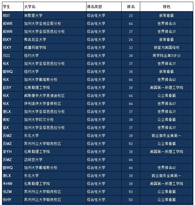 因受篇幅限制,如下是我校2017屆畢業生的部分錄取展示: