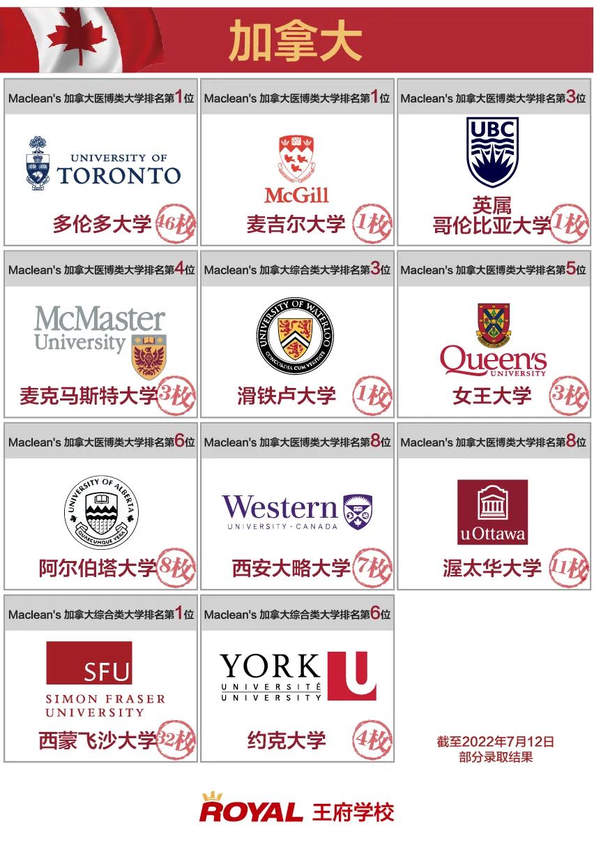 在其他方向,王府學子的錄取成果已覆蓋澳洲八大、加拿大Top3等世界知名大學;其中加拿大方向,錄取難度最大的院校之一麥吉爾大學再添錄取,加拿大統計學排名靠前的滑鐵盧大學再添錄取。