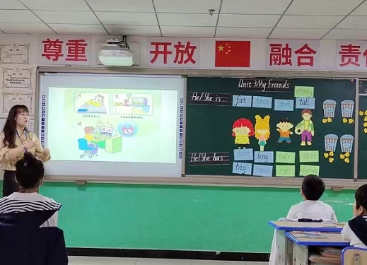 燕橋?qū)W校的英語(yǔ)教學(xué)豐富多彩,課堂生動(dòng)有趣,學(xué)生積極回答,游戲貫穿其中,英文歌曲也朗朗上口,每個(gè)孩子都沉浸其中,下課了還意猶未盡。