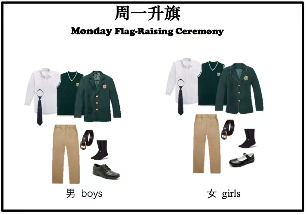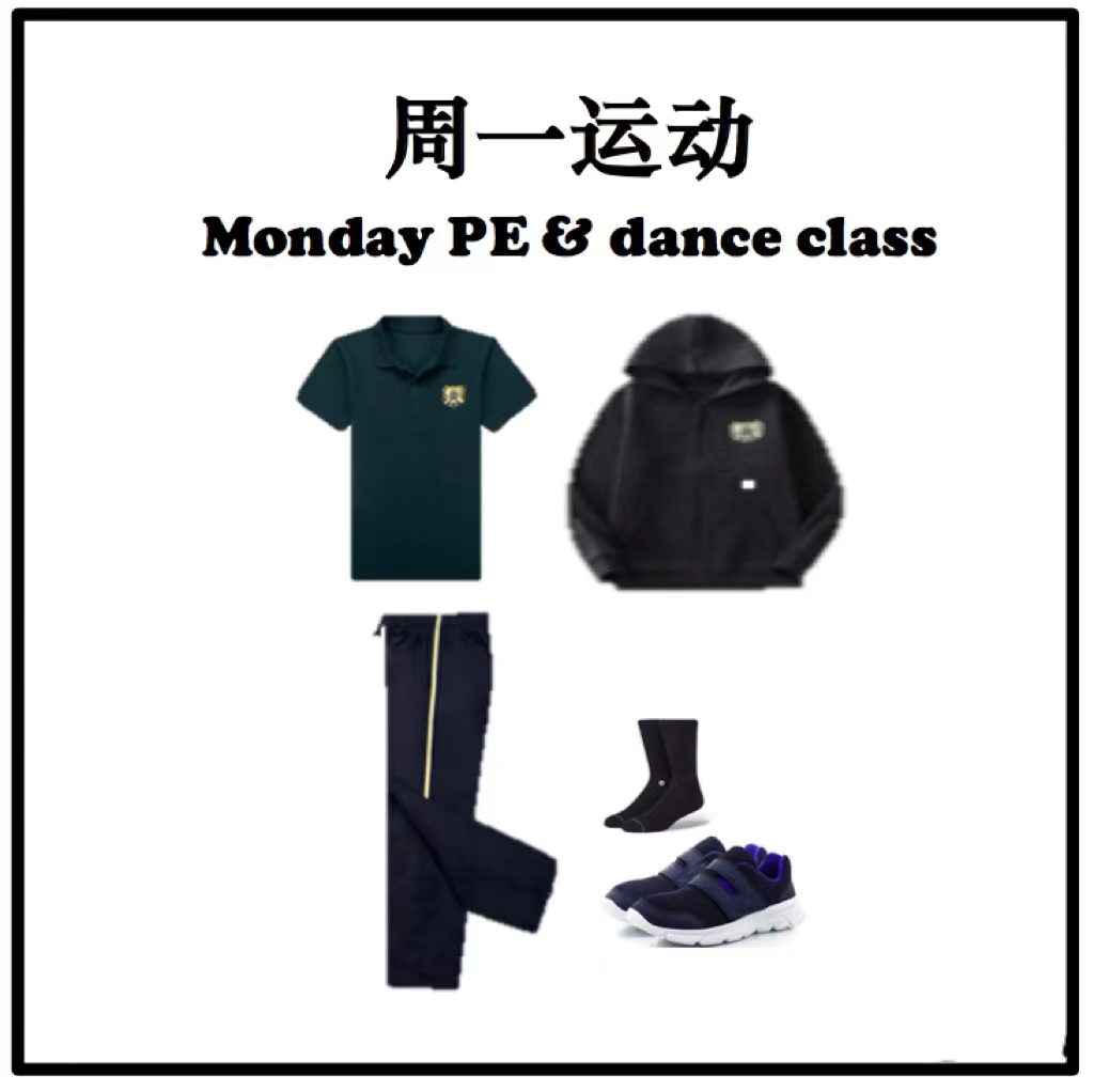 1.學校周一、周五要求著正裝,但如周一、周五當天有體育、舞蹈課,則可穿運動裝;