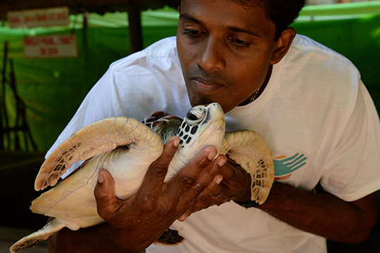 但是,目前斯里蘭卡海龜保育狀況嚴峻,當地居民會撿食海龜蛋,海鳥等海岸天敵也會啄食海龜蛋和小海龜,種種因素都影響這些珍貴海洋生命的生存。為了保護海龜,沿著斯里蘭卡海岸線,政府建立了許多海龜保育中心,用于傳播海龜保育知識,收養受傷的海龜和孵化并放養小海龜等。我們的海龜保育項目位于巴拉皮提雅地區,這里有大型的海龜養殖場。