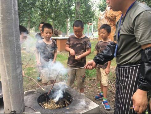 孩子們將收集來的枯木堆在一起,用最原始的方式,學會生火。